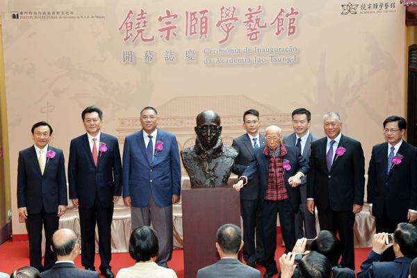 澳門特區政府籌備多時的饒宗頤學藝館8月9日正式開幕,開幕式在下午五時舉行,澳門行政長官崔世安、全國政協副主席何厚鏵,中聯辦主任李剛、外交部駐澳特派員胡正躍、社文司司長譚俊榮與饒宗頣同為其銅像揭幕。饒公同場“打手印”,當局之後會把手印倒模鑄銅,珍藏館內。是日亦是饒公一百歲華誕生辰,衆嘉賓與專程來澳的饒公親屬、好友等同為其慶生,場面溫馨。